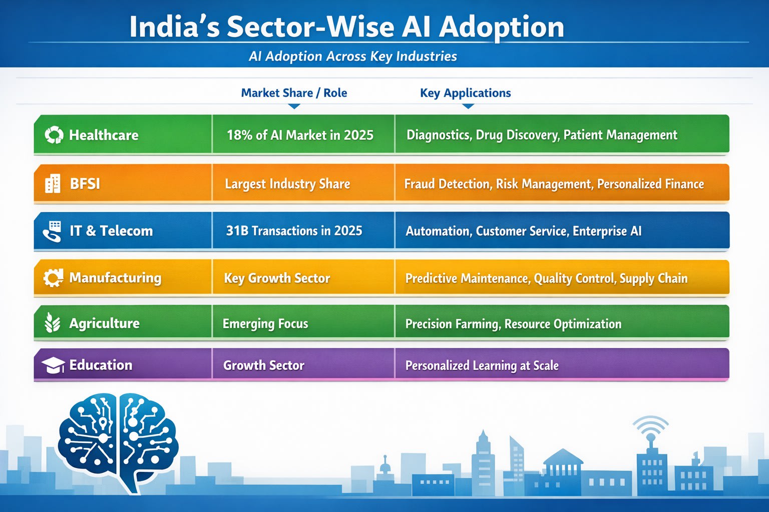 - BFSI holds a 23% market share in conversational AI usage (2024).