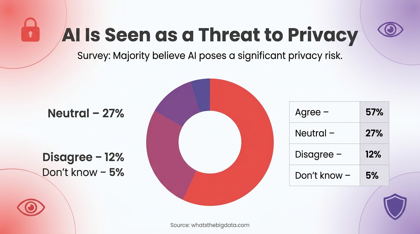 The increasing use of artificial intelligence (AI) is perceived by many as a substantial threat to privacy. According to a recent survey, 57% of respondents agree that AI poses a significant risk to personal privacy, citing concerns over data collection, surveillance, and potential misuse of sensitive information.