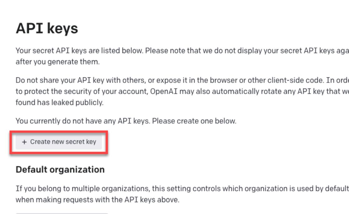 Note that OpenAI doesn’t allow you to copy your existing API keys anymore. You will need to create a new API key and save it somewhere safe to remember your secret key.